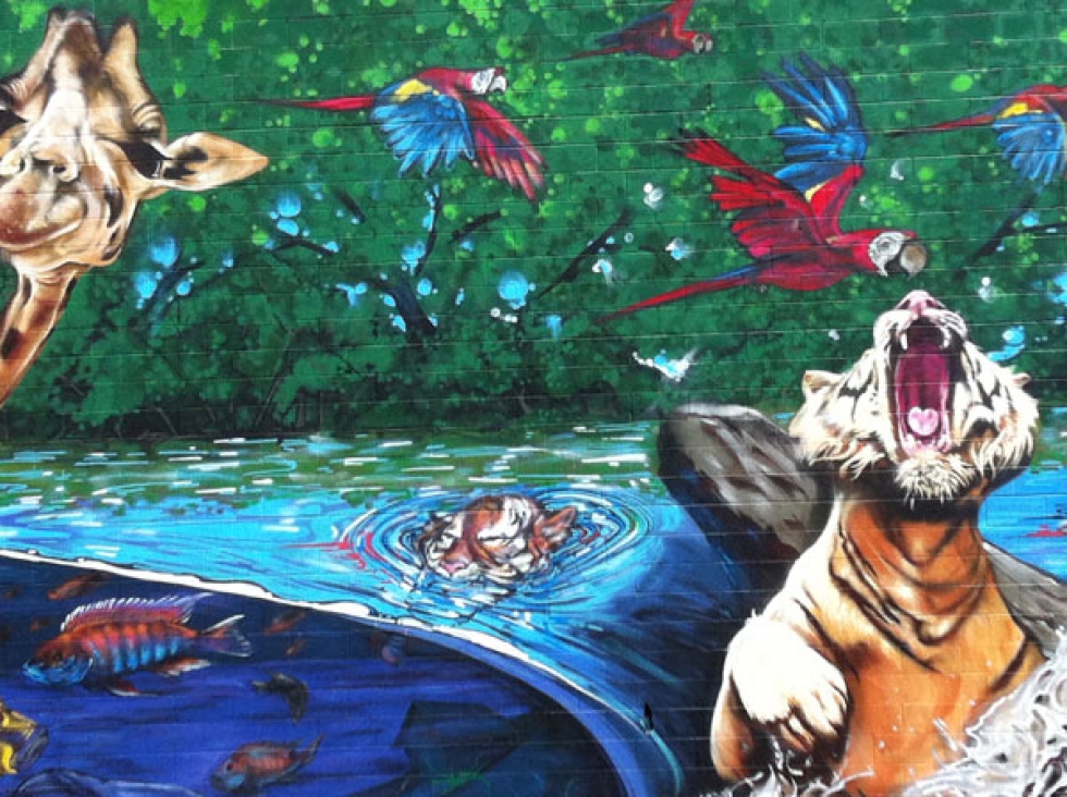 Bridges Over Barriers, an extensive painted mural accompanied by exquisitely detailed mosaic columns in the I-15 underpass at about 300 North and 700 West, represents a remarkable multi-year relationship with artists, children, neighbors, and businesses in a transitional area on the West Side. A project of the nonprofit Neighborworks, and originally inspired by internationally known community catalyst/artist Lily Yeh, the mural took shape with a team of local artists and young people from the neighborhood. Jimmy Lucero, Salt Lake artist, helped bring the mural to completion, celebrated with a community party that included a Native American blessing ceremony. (700 West 300 North)